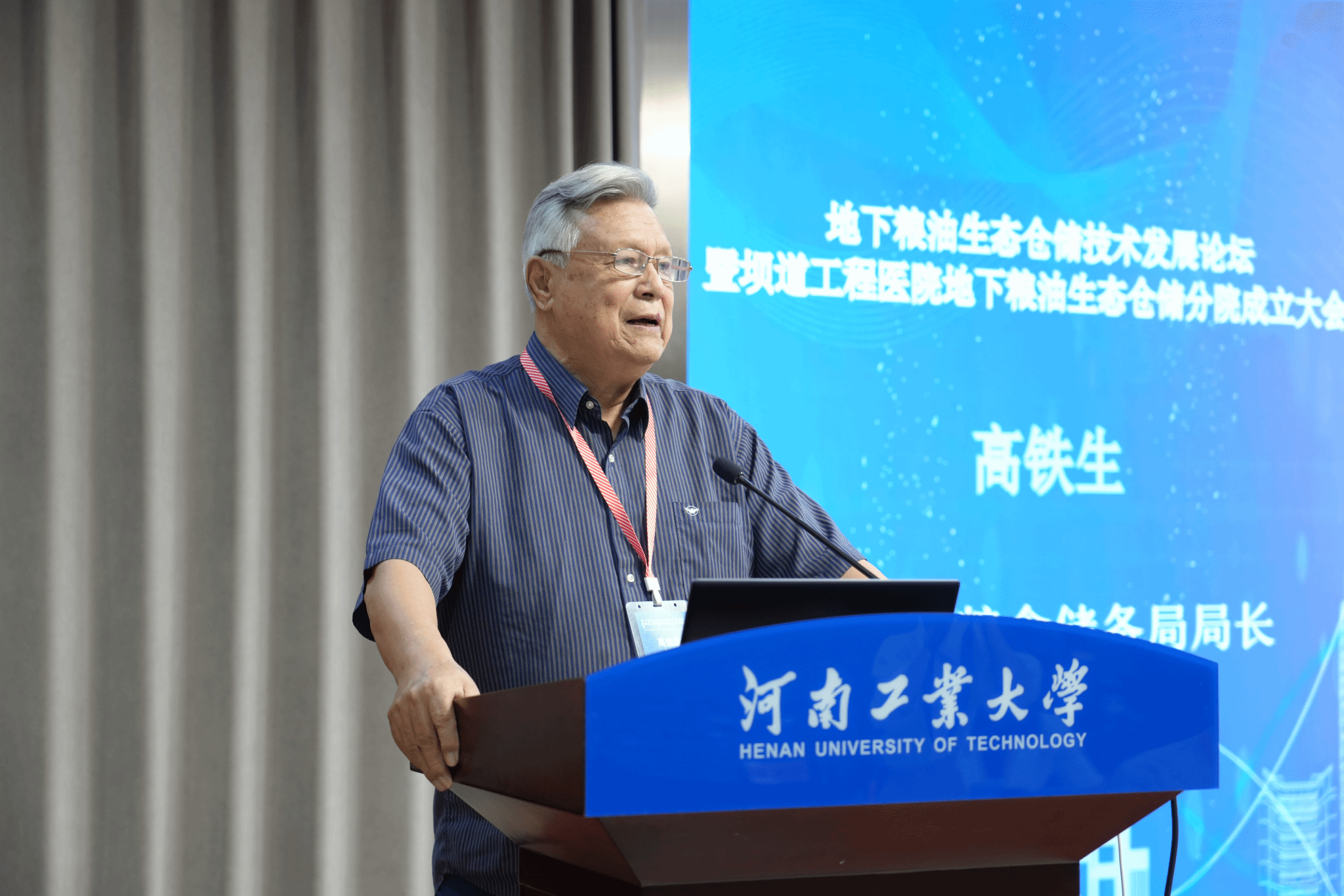 高铁生教授作了题为《创建储粮新宠,强化粮安支撑》的报告,他指出在当前土地资源紧张、粮食仓储绿色转型需求迫切以及城市经济社会高质量发展的背景下,地下粮油生态仓储技术和设施的科研探索与应用显得尤为重要。