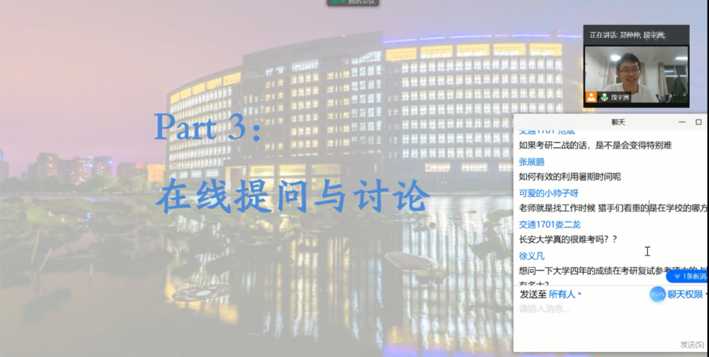 会议答疑环节,同学们踊跃提问,考研毕业生热情回复,切实有效的为备考同学提供了有效建议和参考。