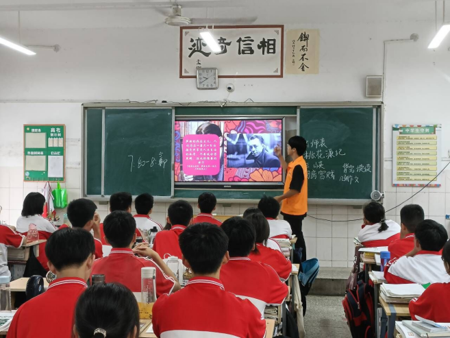 在课堂上,为激发同学们听课兴趣,团队成员结合青少年自身认知特点,使用漫画、视频等青年学生喜闻乐见的形式宣讲马克思主义基本思想和价值观等内容。为进一步提升理论宣讲成效,团队还组织开展了一场党史知识竞答赛。抢答环节,同学们热情高涨,积极举手抢答,氛围活跃。