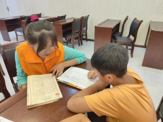 上午,团队成员带领同学们学习古诗,为其讲解诗词结构、大意及主旨,使其领略古诗词的魅力。随后,队员们组织同学们完成数学假期作业,并为同学们讲解重要题型,归纳解题方法,做到“授之以渔”。英语教学方面,成员们根据同学们掌握知识的不同程度安排各自的学习任务,确保每位同学都能学有所得。