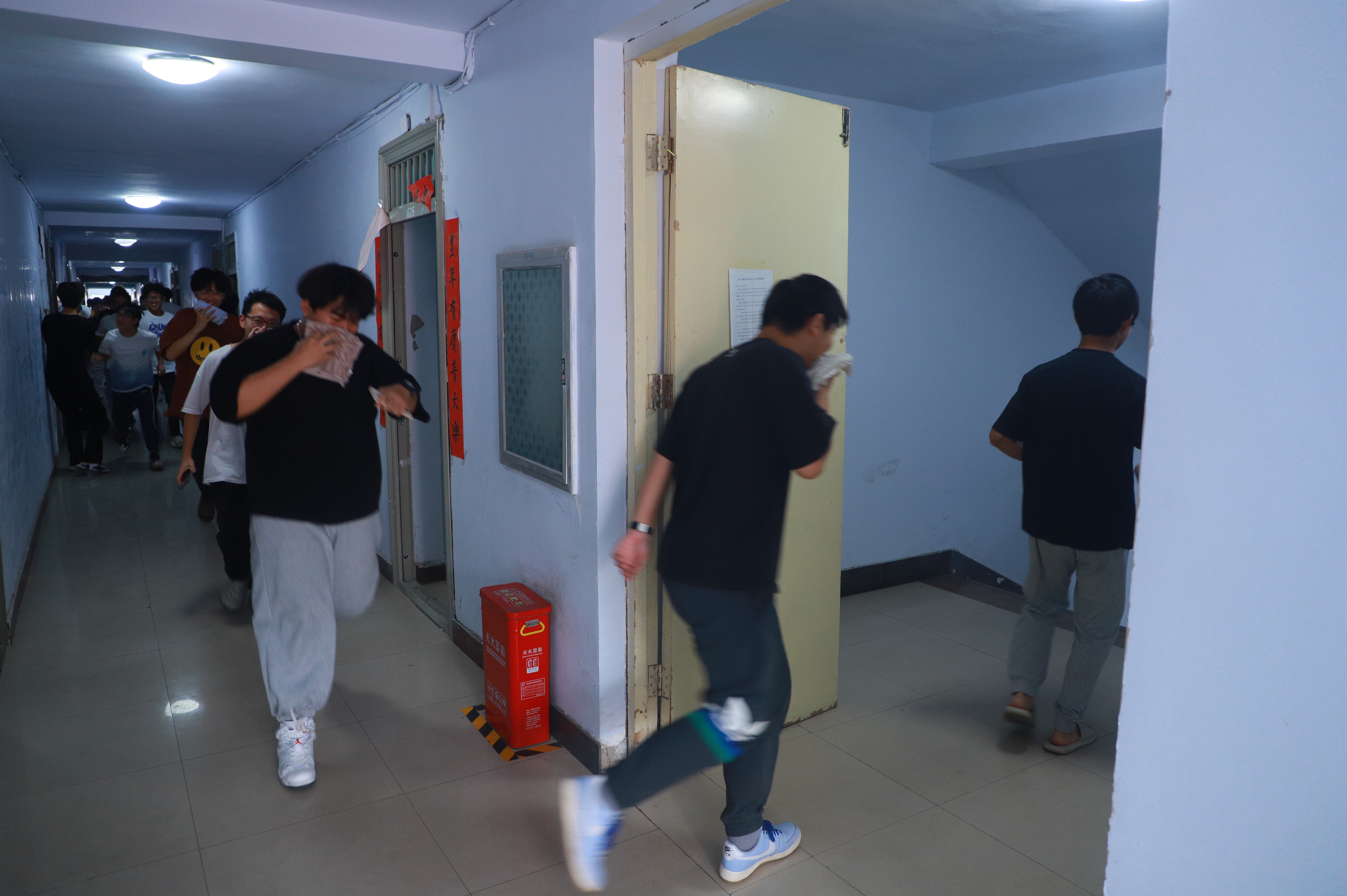 同学们正在进行紧急疏散演练
