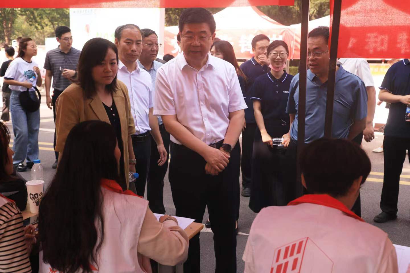 领导在各个服务点巡回指导,了解迎新进度,确保迎新工作顺利进行。