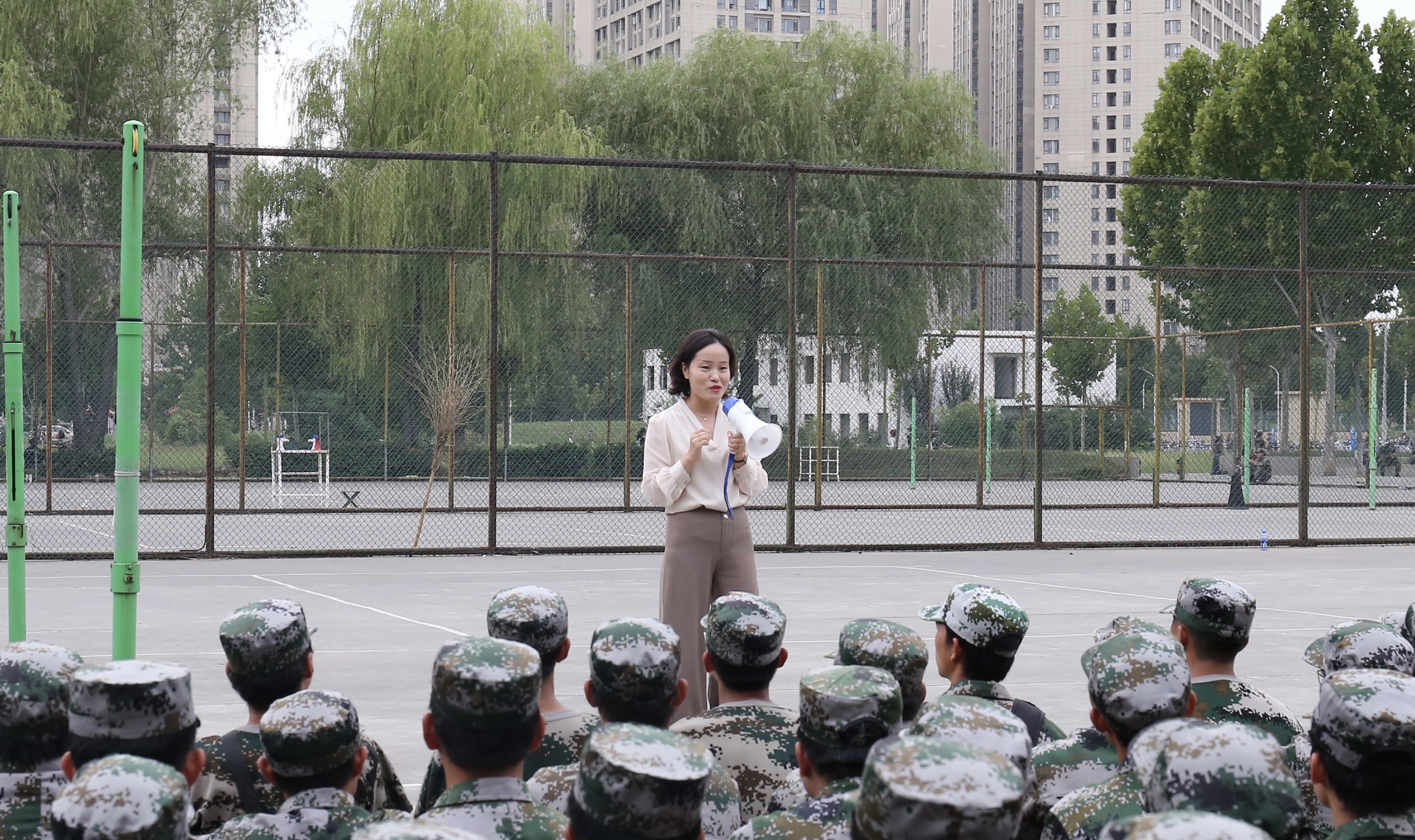 )2023级辅导员尹朝玉、工程管理系主任董润润和工程管理2301班班主任赵一青、2302班班主任吴梅梅、2303班班主任韩建军一行深入军训场地,看望慰问军训教官与工程管理专业2023级全体新生。