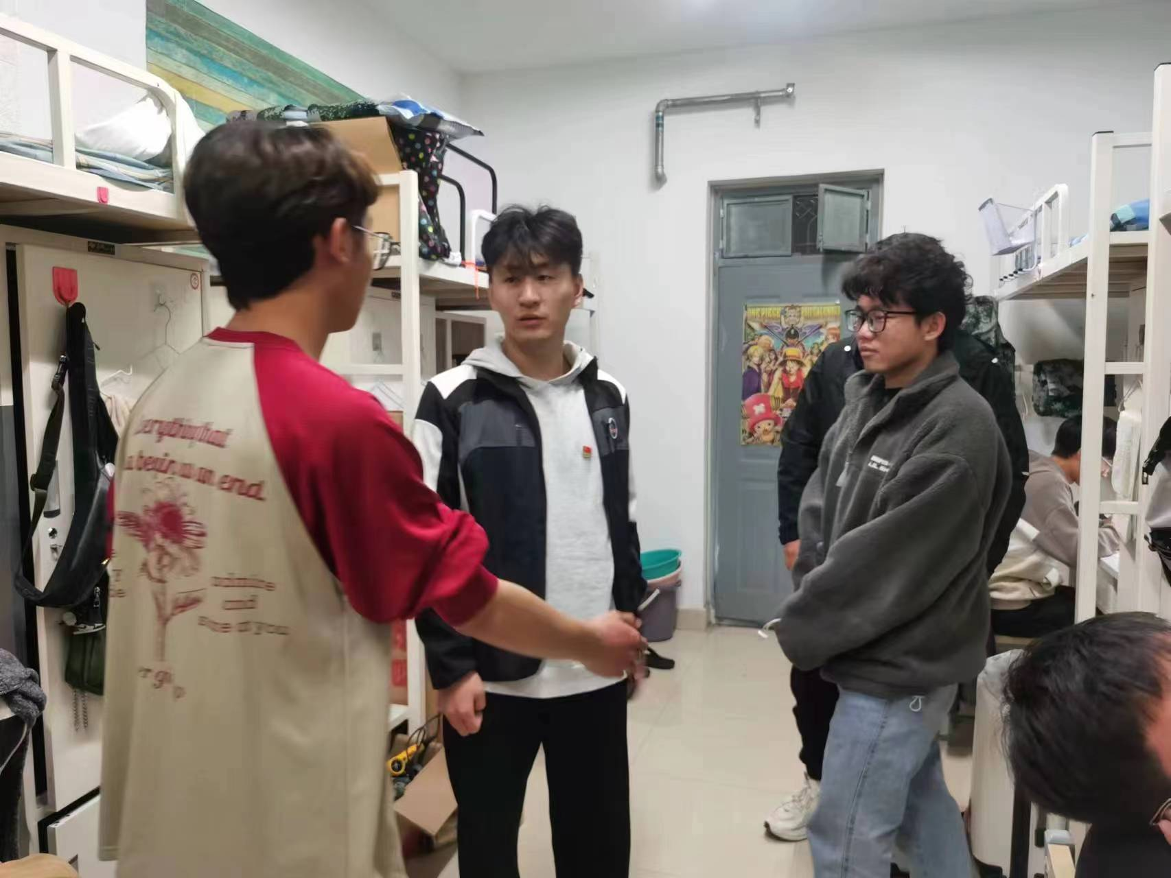 活动中,各支部学生党员分工明确、积极主动、相互协作,每天进入所联系的宿舍进行安全检查、卫生指导和谈心谈话。他们嘱咐同学们要认真学习并遵守凤凰体育 宿舍管理规定,特别强调宿舍内不能使用违章电器,要创造温馨舒适安全的宿舍环境。同时,学生党员们也对学弟学妹的心理、学业、生活等问题进行了深入了解,提醒他们不仅要以学业为重,还要积极参加各类课外活动,全面提升自身能力和素质。针对个别沉迷游戏的同学,学生党员也耐心的教导,希望他们把课余时间用在勤奋学习上