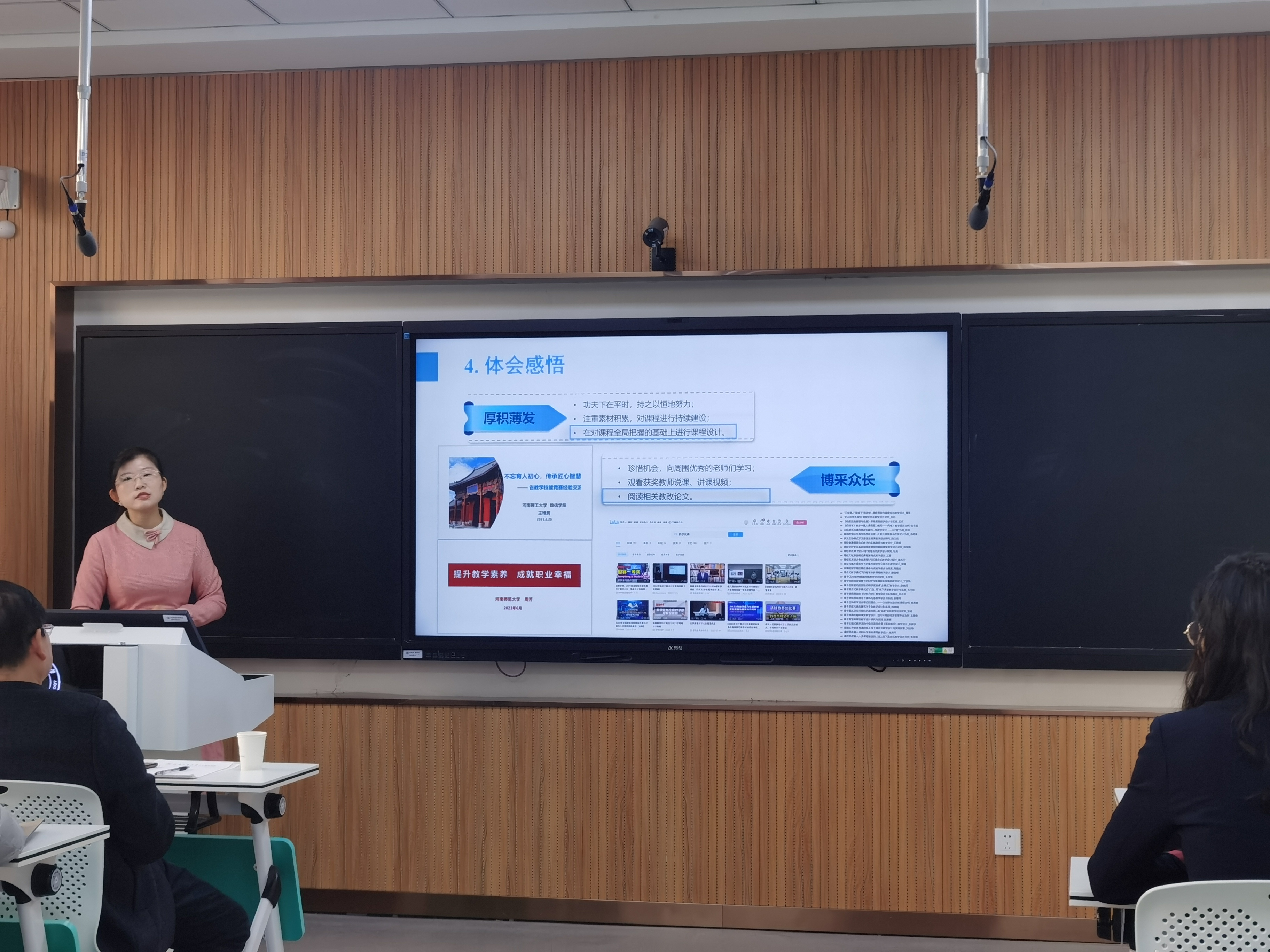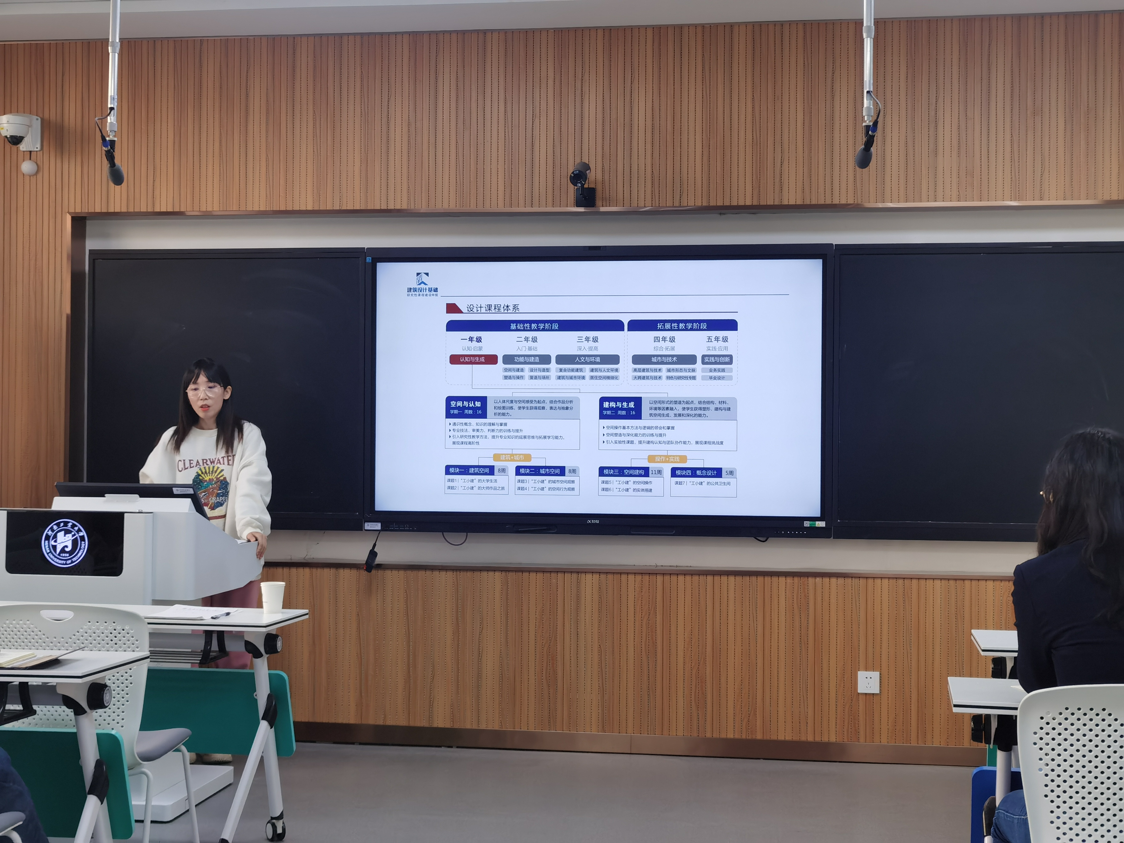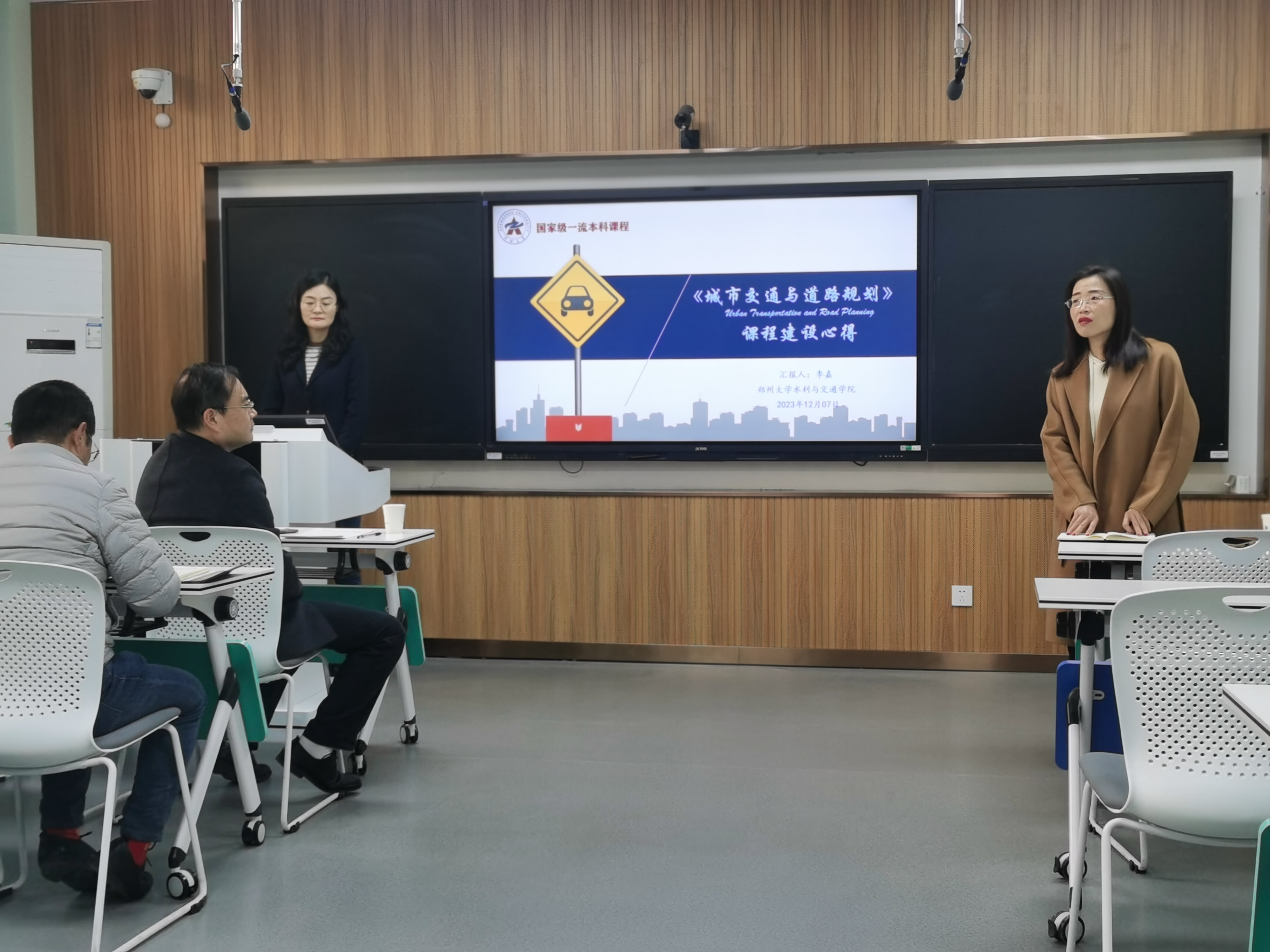 陈曦副教授、张文硕副教授分别围绕《热质交换原理》、《建筑设计基础》主干课程进行了研究性教学说课与授课展示,李嘉教授进行了点评指导。