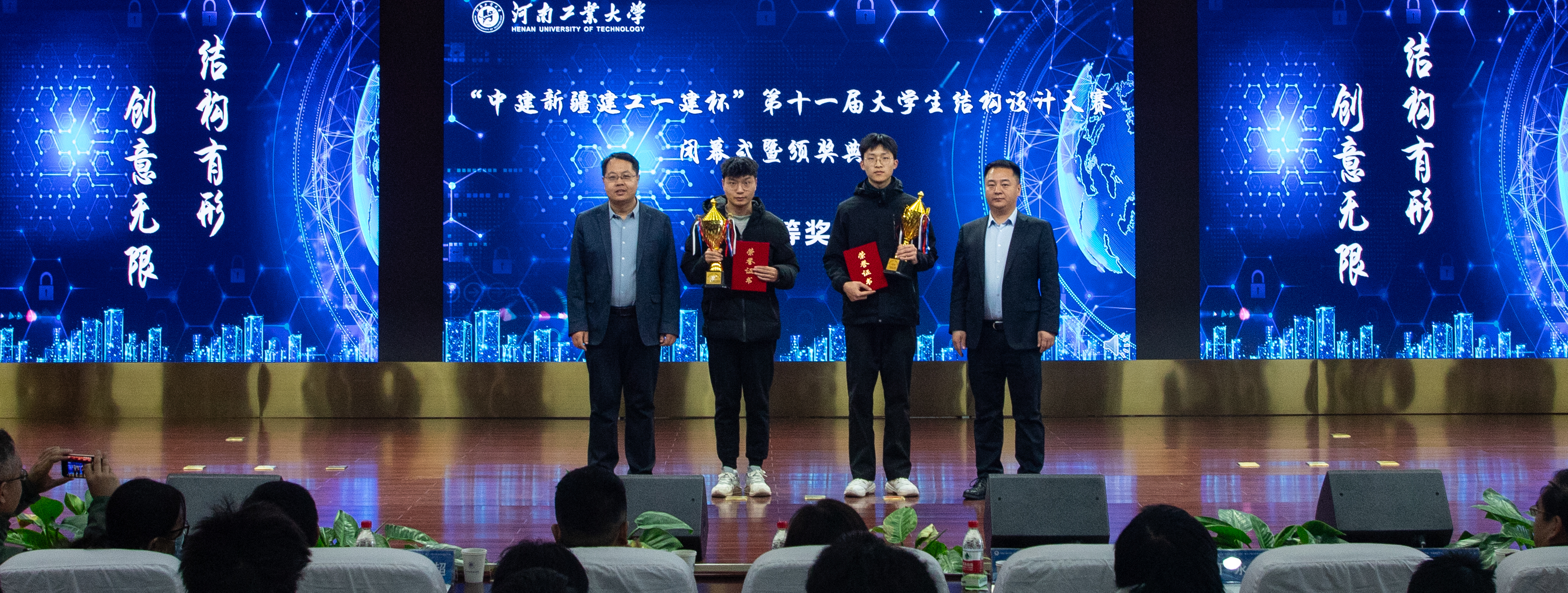 “中建新疆建工一建杯”第十一届大学生结构设计大赛于12月22日在D303报告厅圆满落下帷幕。中建新疆建工集团第一建筑工程有限公司华中分公司执行经理崔继成、副书记副经理张翔宇、人力资源经理王利伟、校团委副书记杨伟超、土木工程凤凰体育