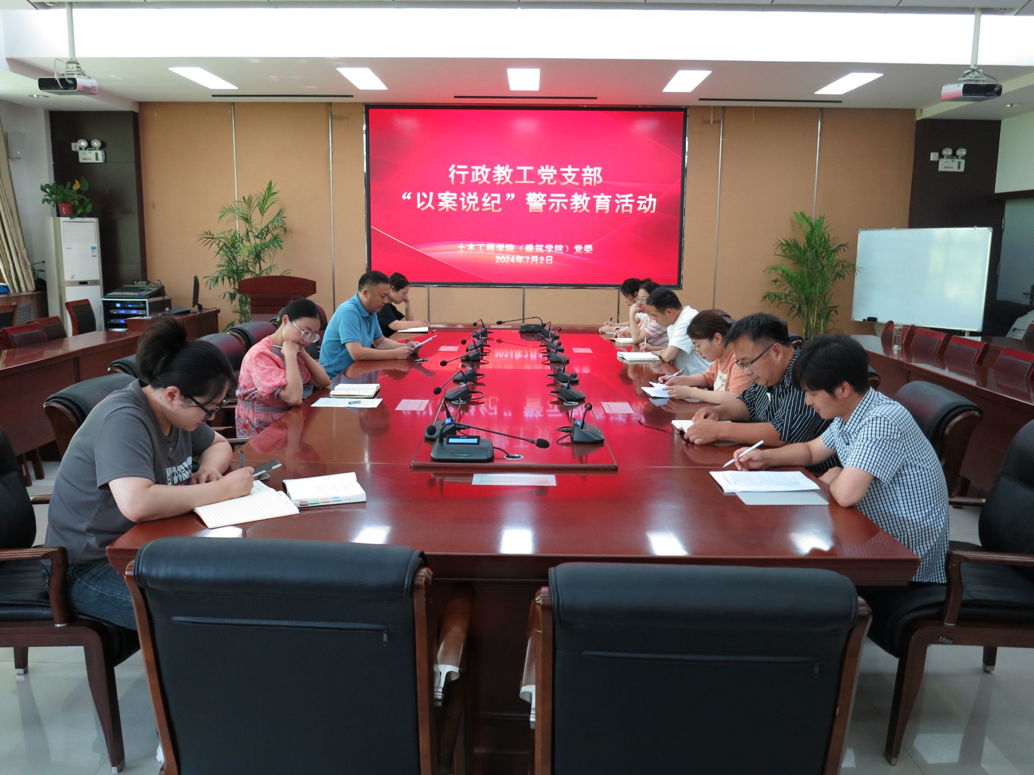 7月2日下午,行政教工党支部在32208会议室召开“以案说纪”警示教育专题学习研讨会。行政教工党支部书记汤东晓主持会议。