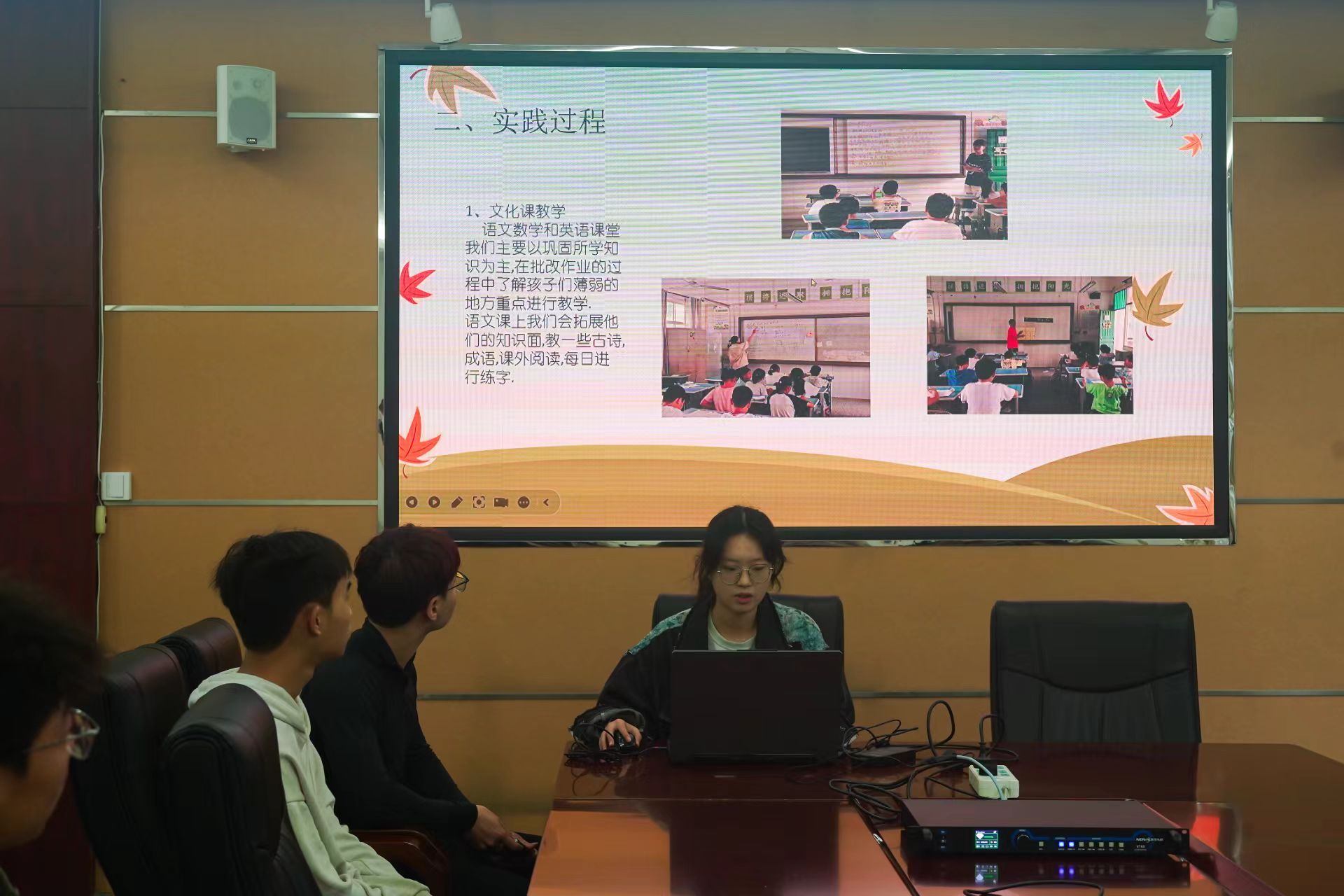 会上,闫静茹老师首先介绍了凤凰体育 2024年度暑期社会实践的总体情况,她从项目立项、团队出征、实践过程和取得的成果等几个方面为老师和同学们做了汇报。随后,各团队代表依次进行了展示:“民族团结实践团”在省市级媒体报道共近30篇;“微光汇聚,熠熠生辉”实践团与当地签署基地共建协议共30余份,在国家级媒体网站发表文章将近40篇,成功挂牌六个,并被评为2024年全国大学生“乡村振兴·青春笃行”计划国家示范性团队;“蒲公英支教团队”在各媒体平台发文60余篇;“支教向未来”实践团发文70余篇等。最后,老师们逐一对各团队进行了点评,并对后期实践工作的接续开展进行了指导。