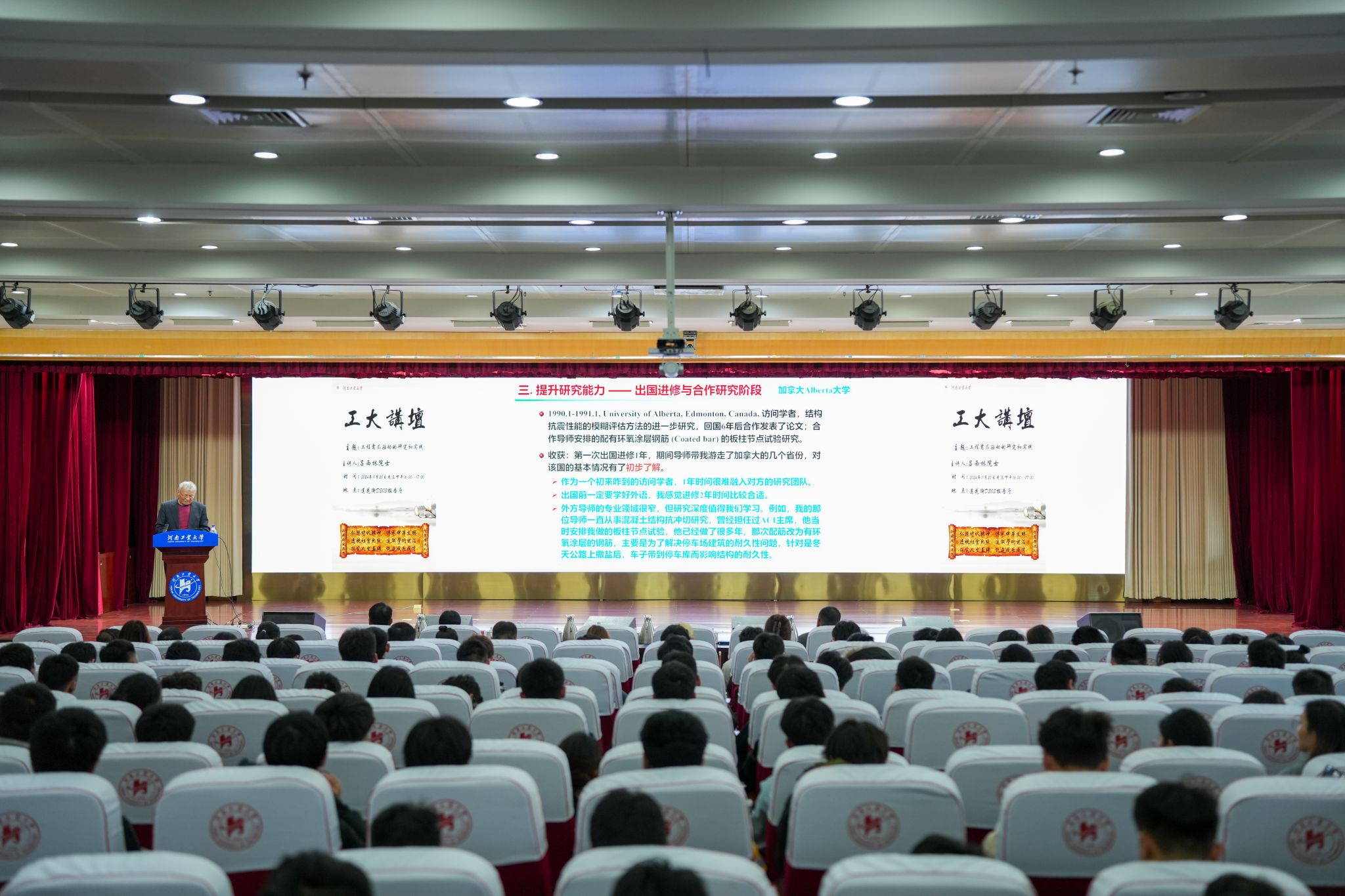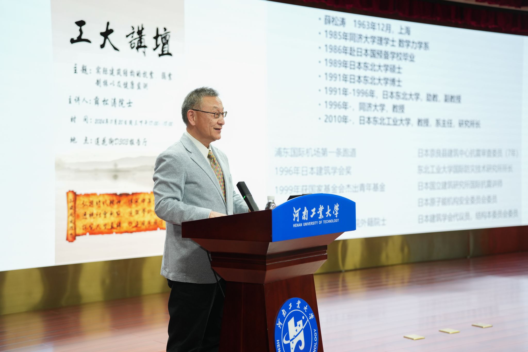)承办的第292期、第293期工大讲坛在莲花街校区学术报告中心D303报告厅成功举办。中国工程院院士吕西林教授、日本工程院外籍院士薛松涛教授受邀做客工大讲坛,分别以“以工程需求驱动的研究和实践”、“实际建筑结构的抗震,隔震,制振以及健康监测”为主题,为300余名师生做精彩学术报告。讲坛分别由校长吴智深、副校长白艳红主持。