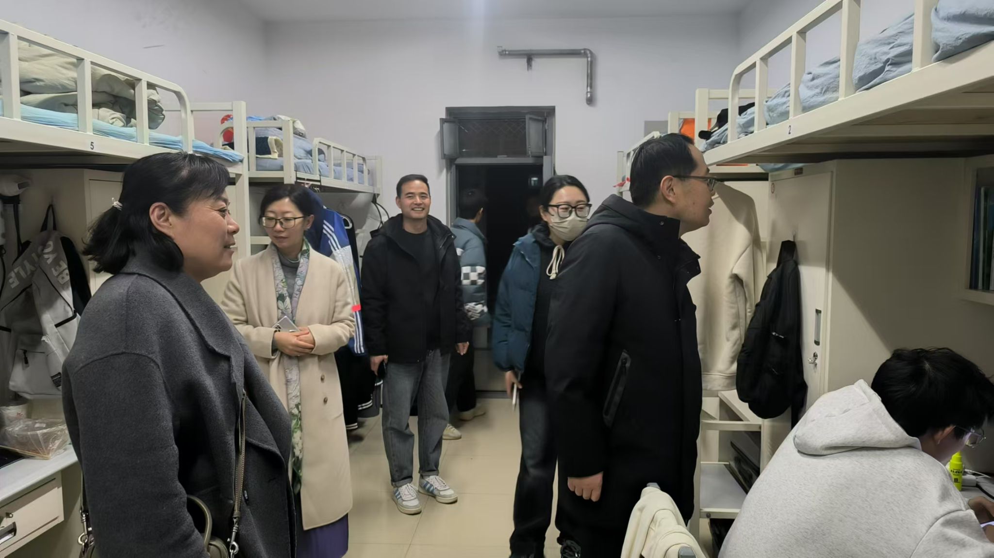 检查小组逐一走访了学生宿舍,仔细检查了宿舍内消防设施、电器使用情况、宿舍卫生以及可能存在的其他安全隐患。此外,领导们还与学生们进行了亲切的交流,询问了他们的生活和学习情况以及困难和需求,鼓励他们保持良好的生活习惯,共同营造一个安全、整洁、和谐的宿舍环境。