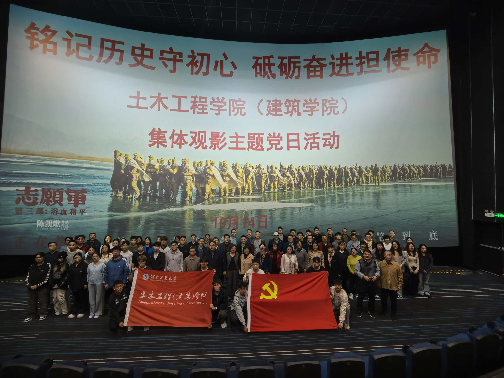 邀请祝宗兰等退休老同志参与此次活动,老中青三代师生齐聚影院,重温峥嵘岁月,传承红色精神。