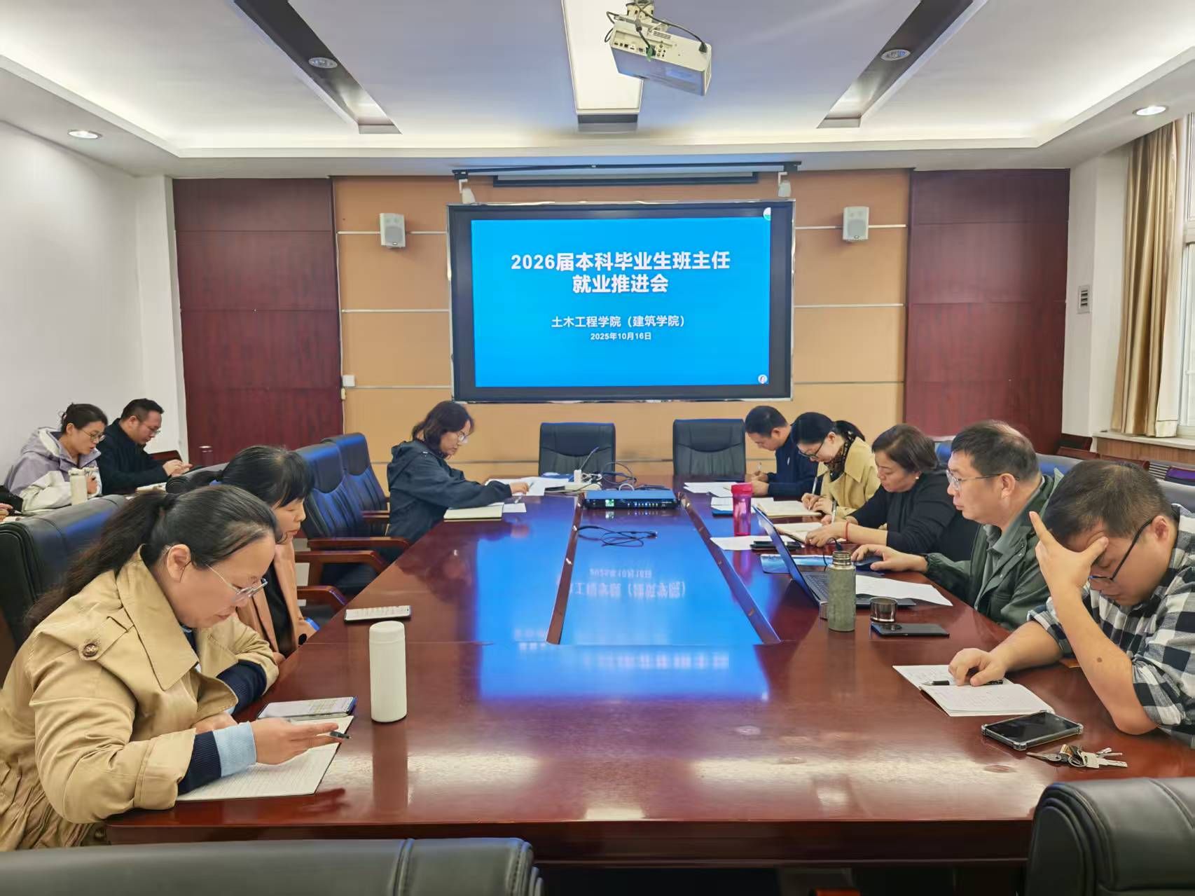 )在惟勤楼32220会议室召开毕业生班主任就业工作推进会。党委书记王影、副书记杨阳、毕业班辅导员和全体班主任参加会议,会议由尹朝玉主持。