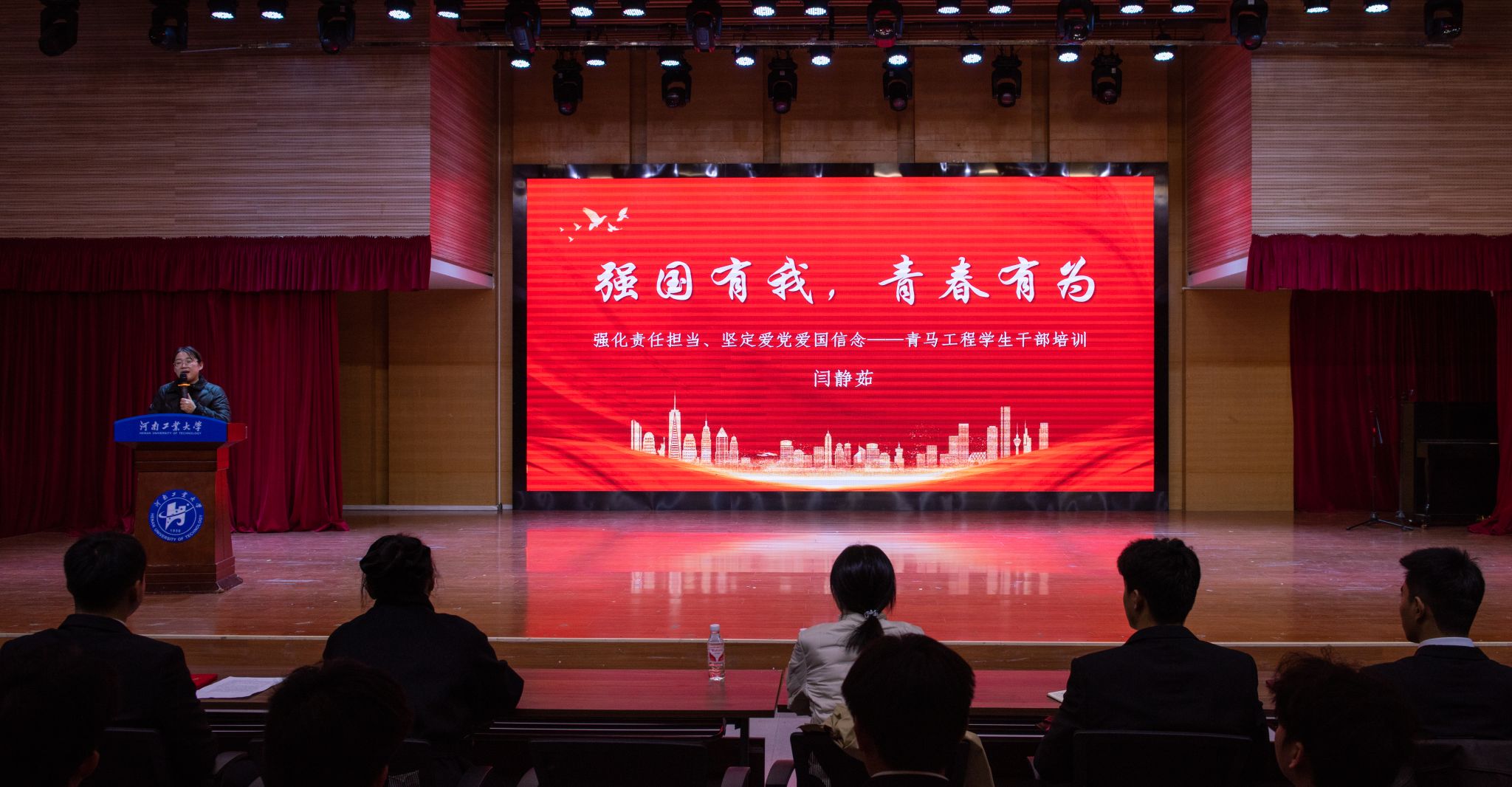 会上,闫静茹以“强国有我,青春有为”为主题发表了讲话,她围绕“青年学生干部,我们能做什么?”“我和我的祖国”以及“扣好人生第一粒扣子”三个重要方面,与在座的同学们进行了深入而细致的交流。她强调,作为新时代的青年学生干部,应当积极思考自身责任与使命,将个人成长与国家发展紧密相连。她希望每一位学生干部在追求成长与进步的过程中,能够始终坚定理想信念,持续刻苦学习,坚持脚踏实地,勇于攻坚克难。闫静茹还鼓励大家要以学透、弄通、务实为努力方向,不断提升自己的综合素质与业务能力,争当各行各业的业务骨干与青年模范,为实现中华民族伟大复兴的中国梦贡献青春力量。