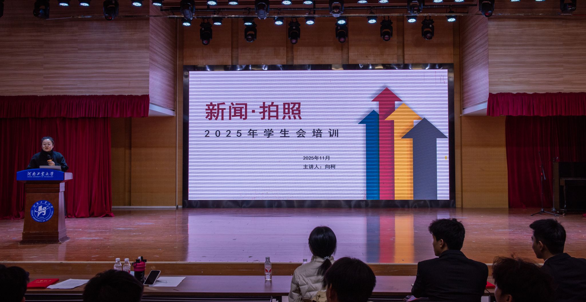 在会议中,向柯特别强调了学生会这一职务的重要意义,她指出,担任学生会成员不仅是一种荣誉,更重要的是承担起服务同学的责任。她要求各部门成员切实履行职责,在日常工作中始终保持端正的态度,踏实肯干,注重团队内部的协作与配合,充分发挥桥梁纽带作用,做好老师与同学之间的沟通“中间人”。此外,为了帮助老成员进一步把握工作细节,同时让新成员对具体工作技能有更清晰的认知,向老师在培训会上详细讲解了各类会议中的实务操作。她具体阐述了会议记录照片的拍摄标准,包括取景角度、画面内容及清晰度等要求,并进一步说明了会后如何对照片进行筛选、修饰与归档,以确保每一项工作都能高效、规范地完成。