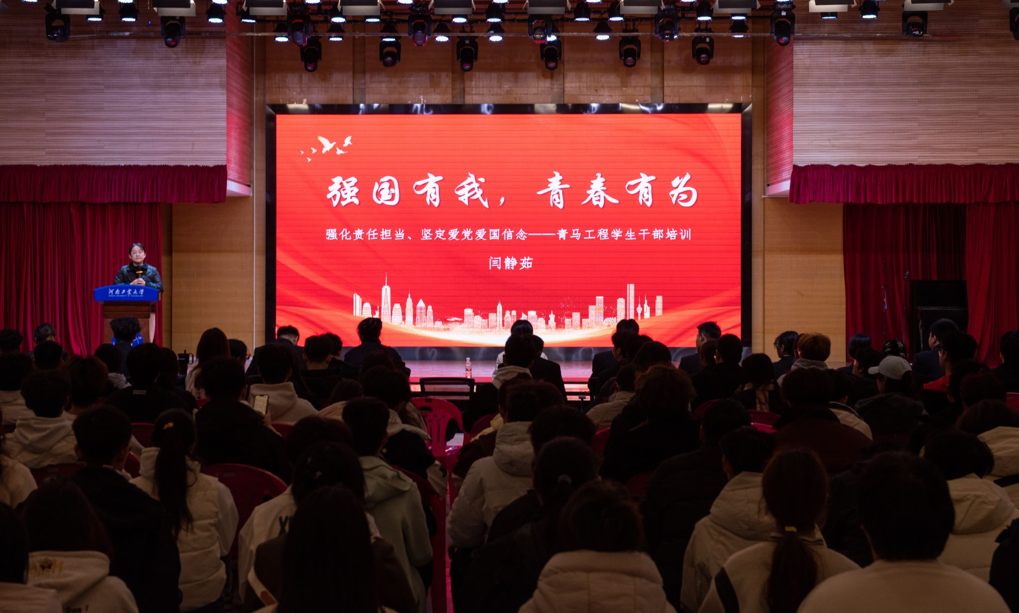 团委书记闫静茹以“强化责任担当,坚定爱国爱党信念”为题,围绕青年学生干部应具备的工作能力、科学工作方法、端正处事态度、积极阳光心态及坚定理想信念等关键方面,为全体学生骨干作了深入浅出、干货满满的专题讲解。为新任学生干部快速适应角色、提升工作水平提供了有力指导,助力青年学子在成长道路上坚定方向、勇毅前行。