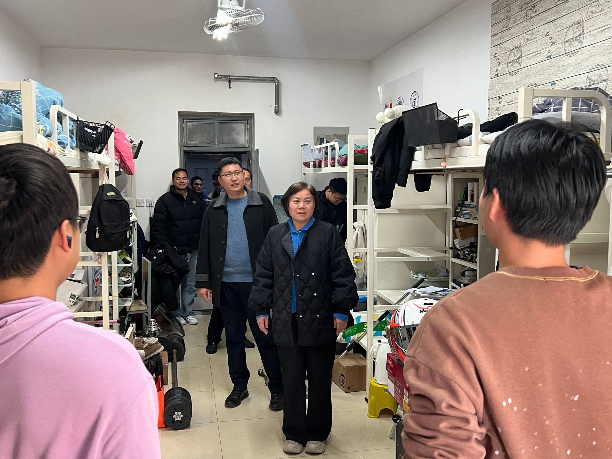 领导和老师们认真查看了宿舍卫生、用电安全及整体生活环境,重点关注学生复习备考情况,并对即将参加研究生考试的同学给予特别关心。针对考研学生普遍存在的复习压力大、作息紧张等情况,老师们细致了解其实际困难,引导他们科学安排时间,保持积极心态,坚定信心,稳步完成最后阶段的备考任务。
