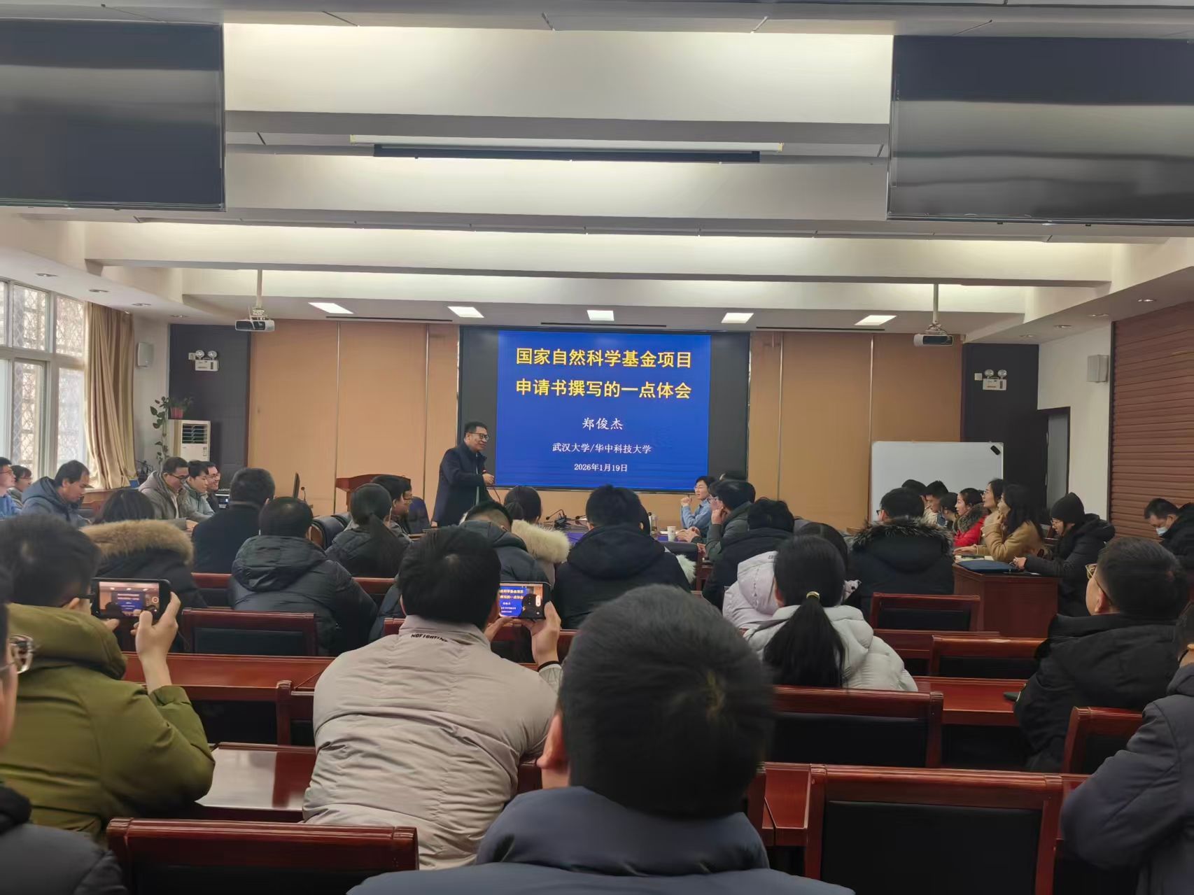 于2026年1月19日下午在32208会议室,特邀武汉大学/华中科技大学郑俊杰教授作了题为“新版申报书正文撰写专题解读”的专题讲座。院长丁永刚、学术副院长徐志军、凤凰体育