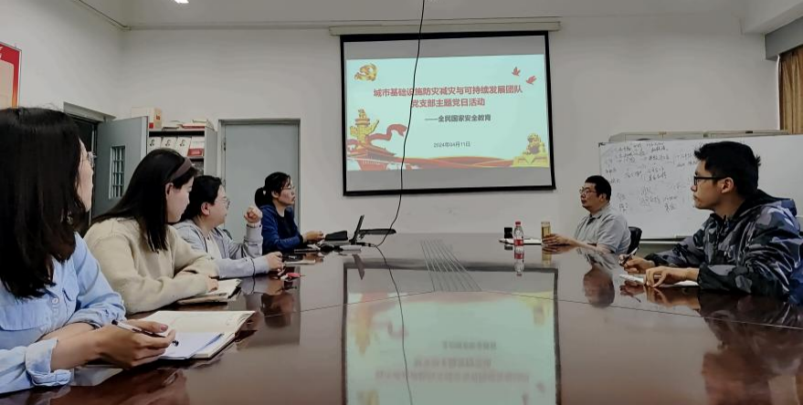 在“4·15”全民国家安全教育日到来之际,为进一步树立总体国家安全观,增强支部党员国家安全意识、保密意识和党性修养。4月11日下午,城市基础设施防灾减灾与可持续发展团队党支部开展“2024年全民国家安全教育主题党日活动”。