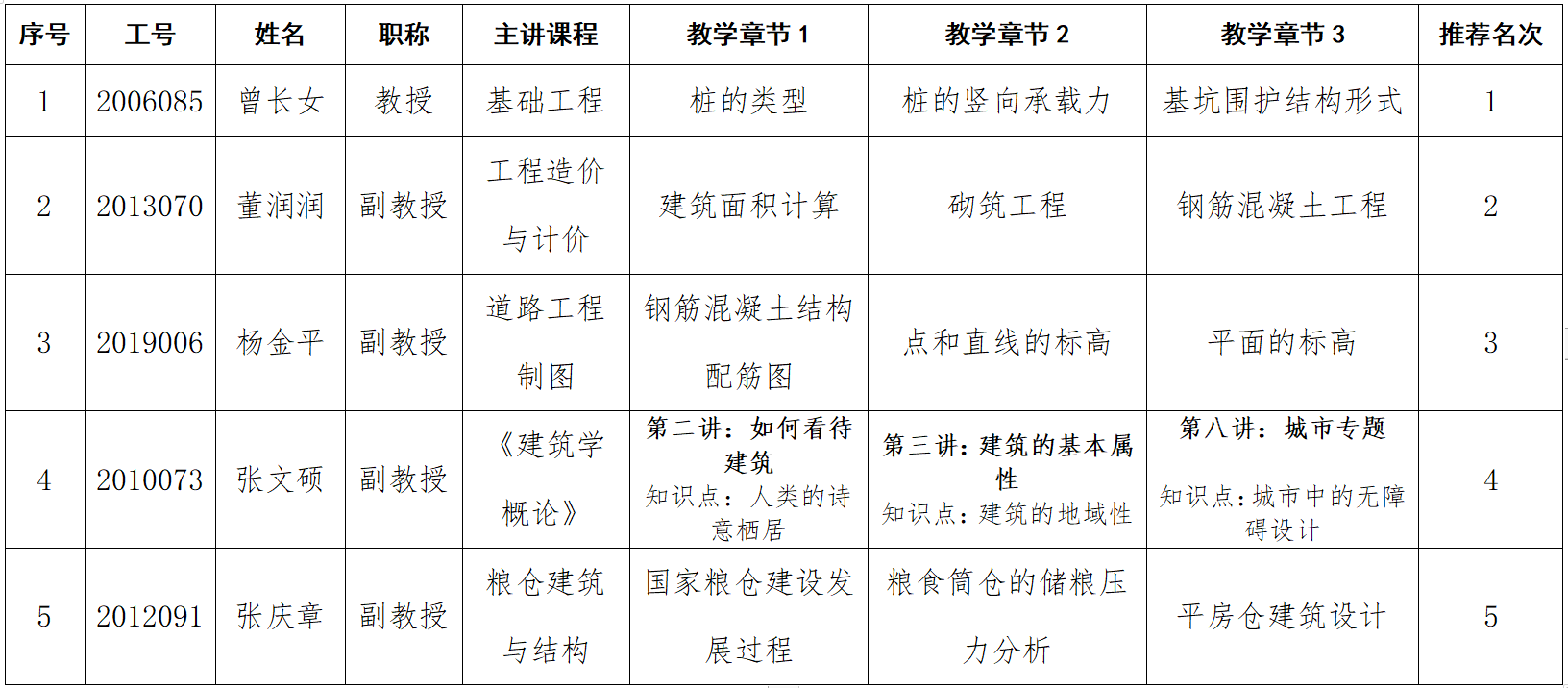 土木工程凤凰体育 (建筑凤凰体育 )教学质量奖推荐人员公示