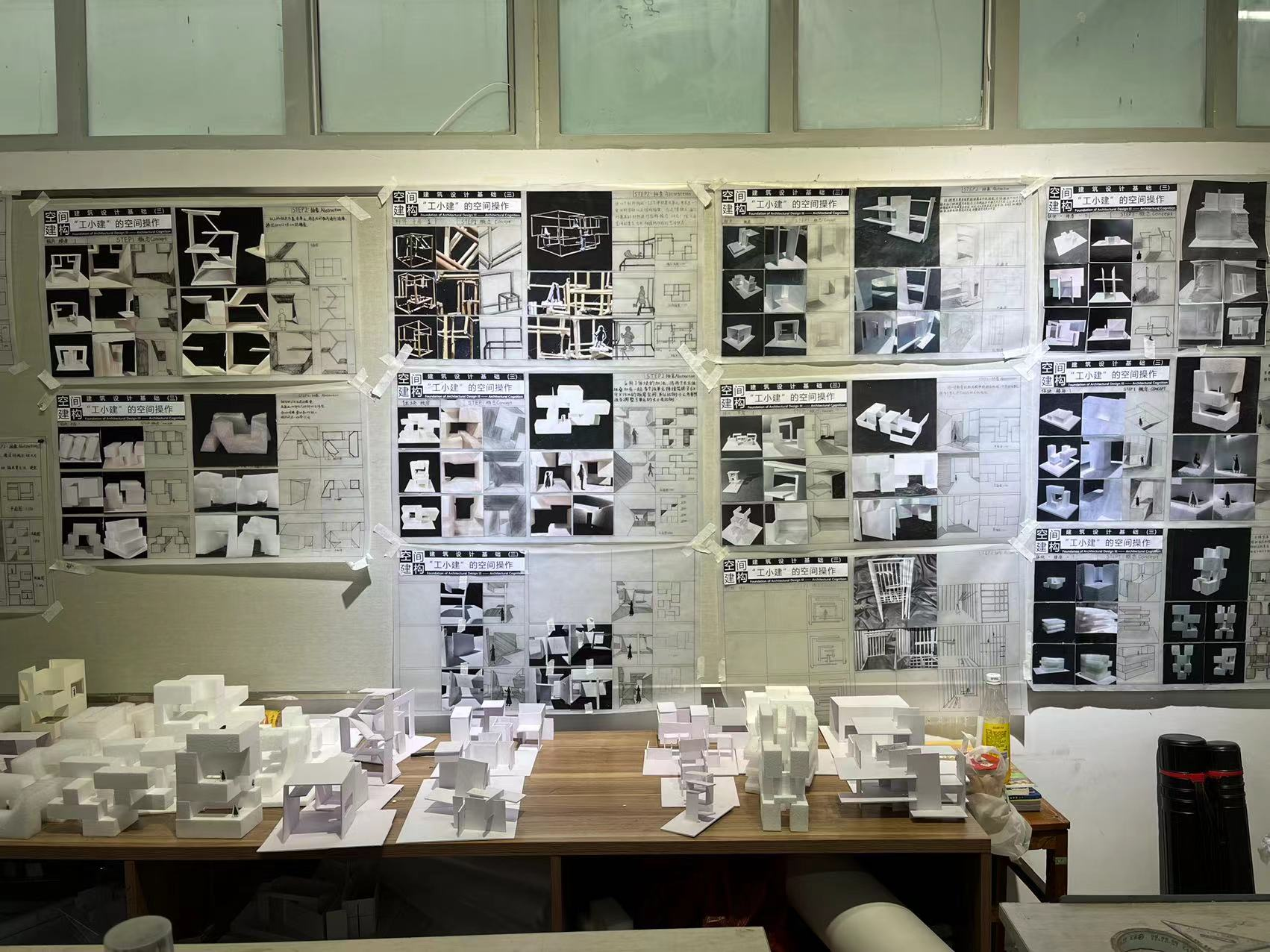 教学过程:课程单元将讲座授课、教师演示、设计讨论三者有机结合:单元重点节点以讲座授课阐明教学目的,并以少量的理论作为教学支持;平时授课以设计讨论为主,教师演示为辅,帮助学生快速了解空间操作手法,利用简单操作营造复杂空间。课程单元的结束进行跨组评图,让学生感受评图氛围的同时对自身的设计工作进行回顾和反思?/p>