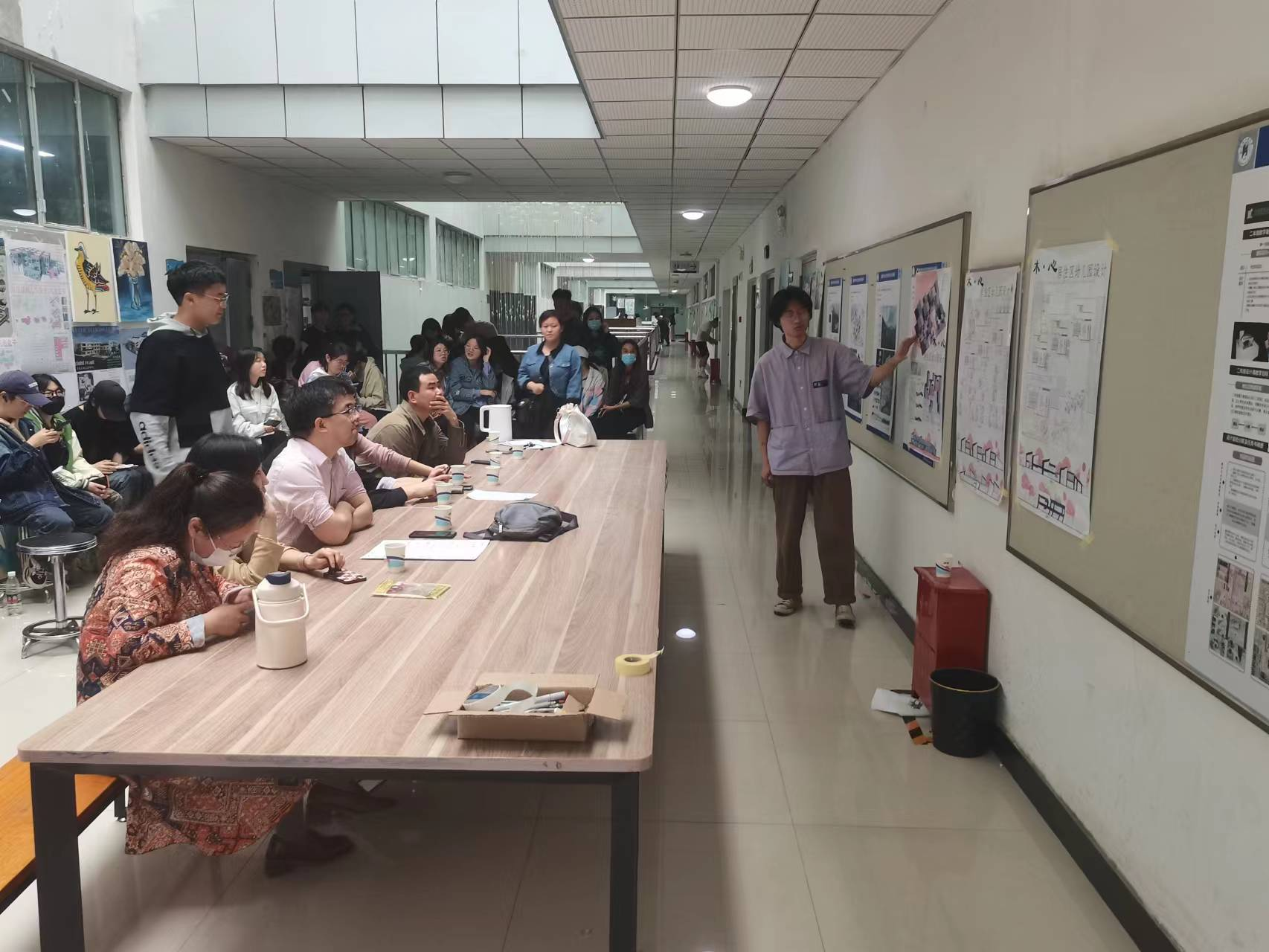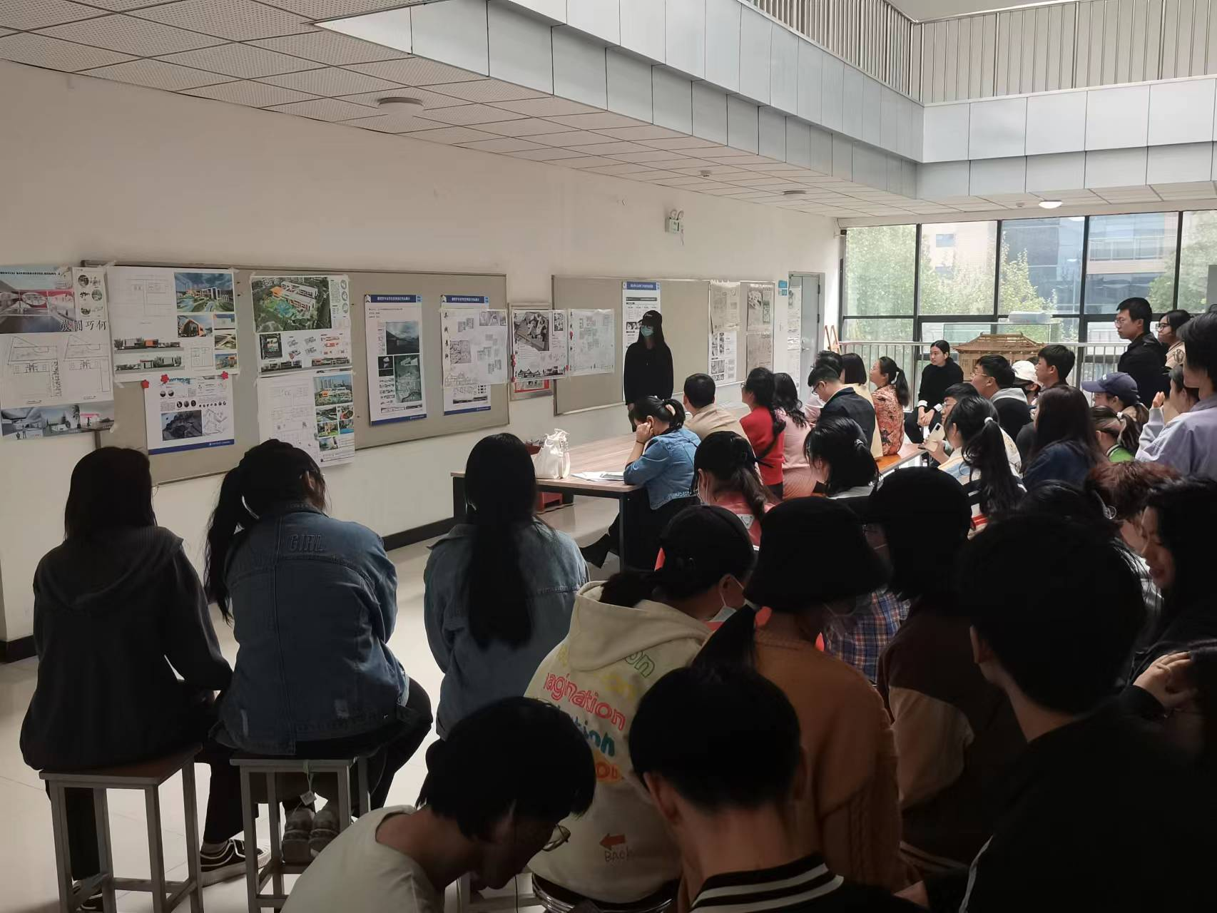 4?4日,在河南工业大学土木工程学院专业教室室外公共活动空间进?1级建筑专业‘居住区幼儿园’课题评图?/p>